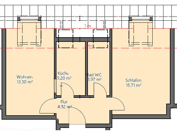 Die gut vermietete 2-Zimmer Dachwohnung liegt im 2. Obergeschoss eines gepflegten Mehrfamilienhauses mit insgesamt 10 Parteien. Sie besteht aus einem Wohnraum, einem Schlafzimmer, einer Küche, einer Diele und einem modernen Duschbad mit Fenster.